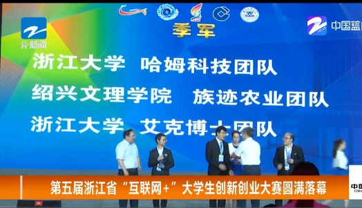 浙江电视台公共新闻7月27日专题报道了第五届浙江省“互联网+”大学生创新创业大赛现场盛况,我校“族迹农业”团队荣获季军,新闻视频链接:http://www.cztv.com/videos/xqdsy?from=message