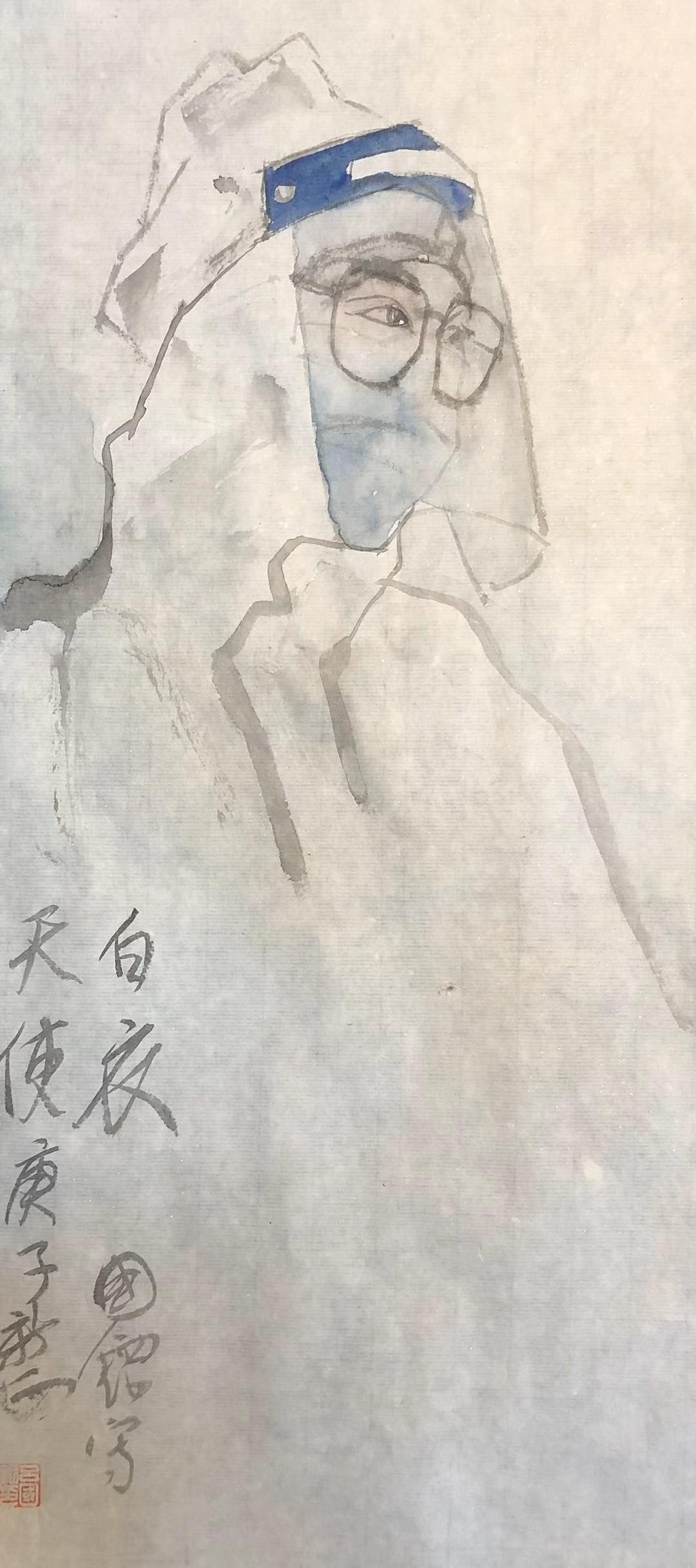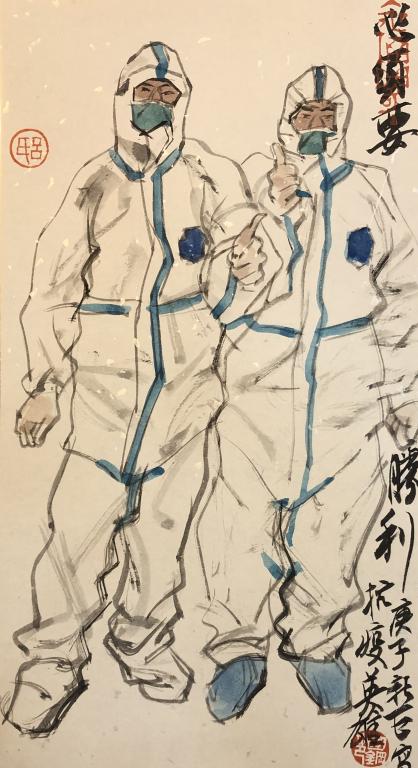 他的这些画如速写,言简意赅,短小精悍。如“逆行者”,表达一个背影,当他(她)直面危难时,给我们的那种力量,如坚山盤石,这是英雄的象征!钟南山院士令人感动敬仰,八十五岁的高龄还一直坚守在一线战场,是人民健康的真正卫士。在吕国钢心目中是民族的英雄,他小时候经常喜欢画民族英雄岳飞,然后把钟院士也画成岳飞的样子,铁甲盾牌,一只手警告人们不要食用野生动物,一手持盾,保护人民生命健康安全!