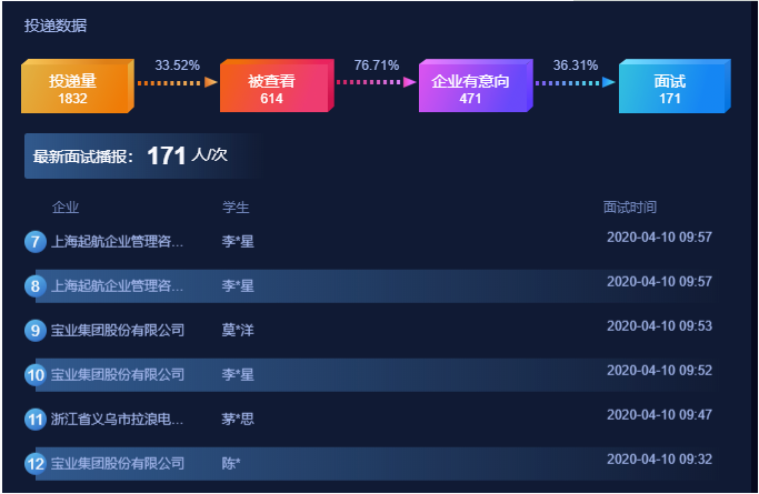 学校开通《职业发展与创就业指导》在线课程平台,在线助力毕业生掌握求职技能,提高创就业能力;开通职业测评平台,测评内容包括现状评估、自我了解、职业探索、决策行动四个模块,生成“生涯计划书”,帮助学生认识自己、探索职业、确定目标、做出决策并制定行动计划;开启线上创新创业赛事指导,联合中国高校众创空间联盟等社会力量发起“在线双创行动”,通过钉钉、企业微信等平台组织学生学习大咖直播、双创课程、“互联网+创新创业大赛”等,灵活开展导师与项目之间的多种帮扶活动,实现对重点项目和团队人员的实时跟踪。