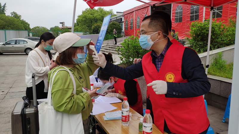 基建处赵灿一连四天每天工作12小时左右,全身心投入返校复学的志愿服务,他在5月6号下午和8号整天,都前往绍兴北站接站,其他时间在河西测温处。问起他坚持的原因,他说:“才4天时间,算不上什么。春节期间我在湖北老家,在家隔离的70多天时间里,我切身感受到全国上下众志成城、支援湖北的温暖;同时我也是一名党员,能够助力学校大局工作,我义不容辞。”