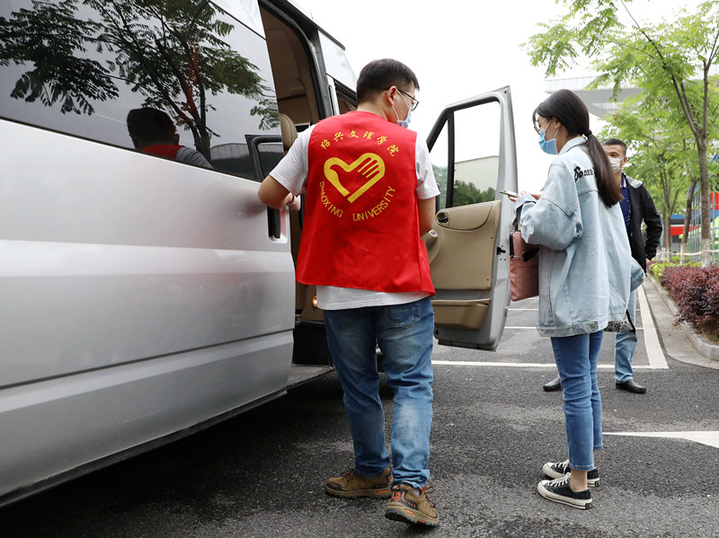 “学校的接站安排做得非常细致到位,老师们穿着红色的马甲,很醒目,还举着学校的牌子,一出大厅就能看到。有体温检测、还配备了消毒湿巾,防护很到位。”土木工程学院工程造价171班侯佳奇表示,“下了车就是公寓,非常方便,真正体会到了一种‘回家’的亲切。”