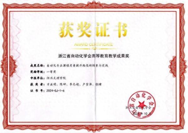 11月8日至9日,第18届浙江省高校自动化类专业院长、系主任论坛在杭州举行。会上颁发了浙江省自动化学会高等教育教学成果奖,机械与电气工程学院副院长方益明教授团队主持的“自动化专业课程质量提升路径的探索与实践”荣获一等奖。