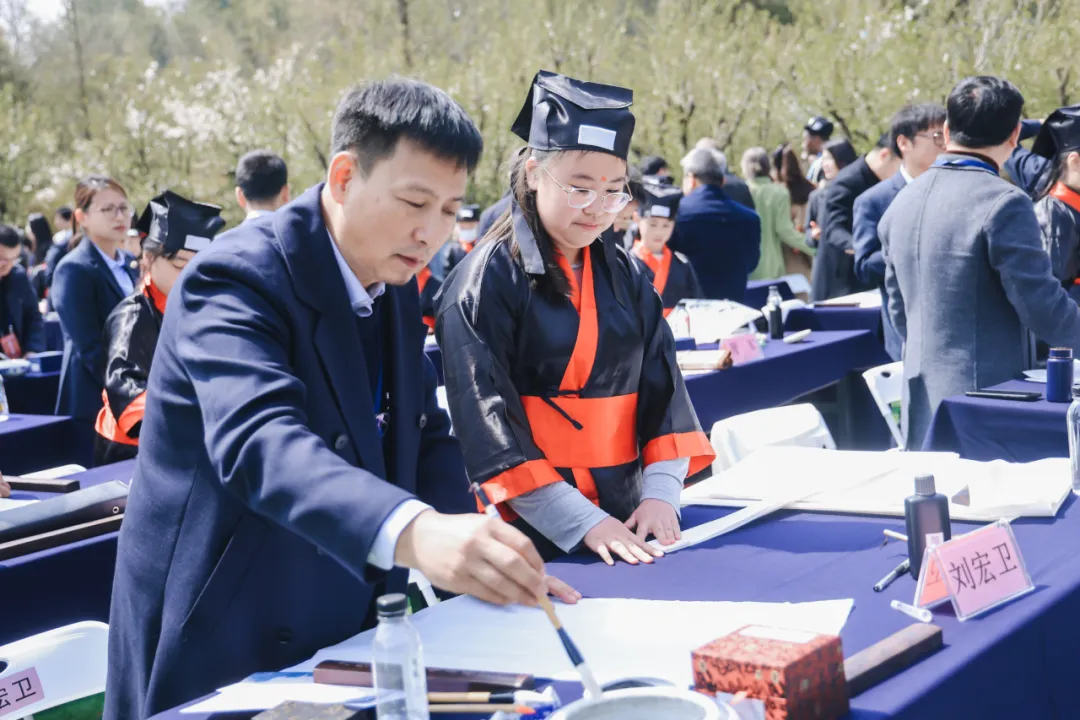 活动现场书法家以额点朱砂、开笔破蒙的古老仪式,为绍兴的书法学童推开智慧之门;在兰亭景区中,孩子们的书法作品陈列其中。我们看到,兰亭书法节不仅仅是每年一次的节日,书法更是已经融入日常,成为生活的一部分。
