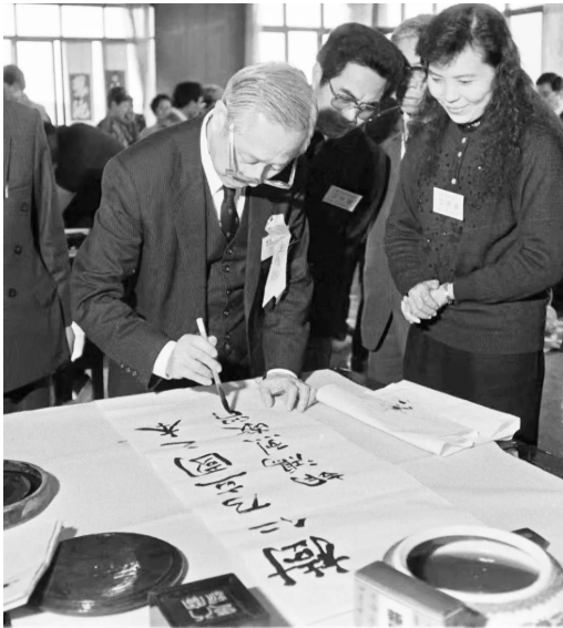 1992年,胡鸿烈回家乡参加兰亭国际书法节,现场泼墨挥毫。(袁云 摄)