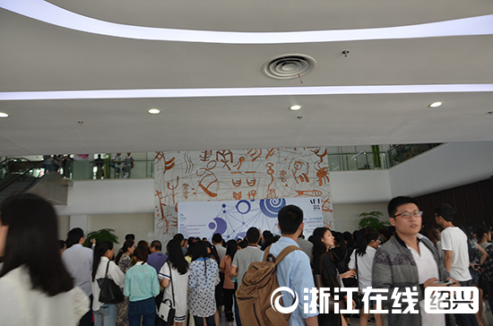 今天下午14:00,活动在绍兴市文化馆举行,今天的活动主要是“2015年绍兴市高校艺术设计专业毕业作品汇展暨绍兴市大学生书画艺术新锐奖颁奖仪式”和“2015绍兴市高校毕业生成果推荐会暨专场招聘会”。活动现场展出了不少高校服装服饰、视觉传达、环境艺术、工业设计等专业设计作品,文化馆广场上,近百家相关企业进行现场招聘与宣传。