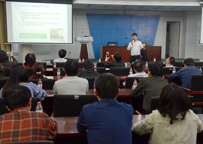 4月27日下午,“聚焦一流学科,推动一流学术研究”报告会在图书馆一楼会议室举行,特邀科睿唯安主管沈喨喨作主题报告,进一步帮助我校干部、教师和管理人员深入了解WOS、ESI、Incites的特点和使用方法,有效利用该平台进行全面的科研绩效分析。各二级学院、部处、直属单位负责人及分管科研、学科工作的相关人员参加报告会,会议由科学技术处负责人主持。