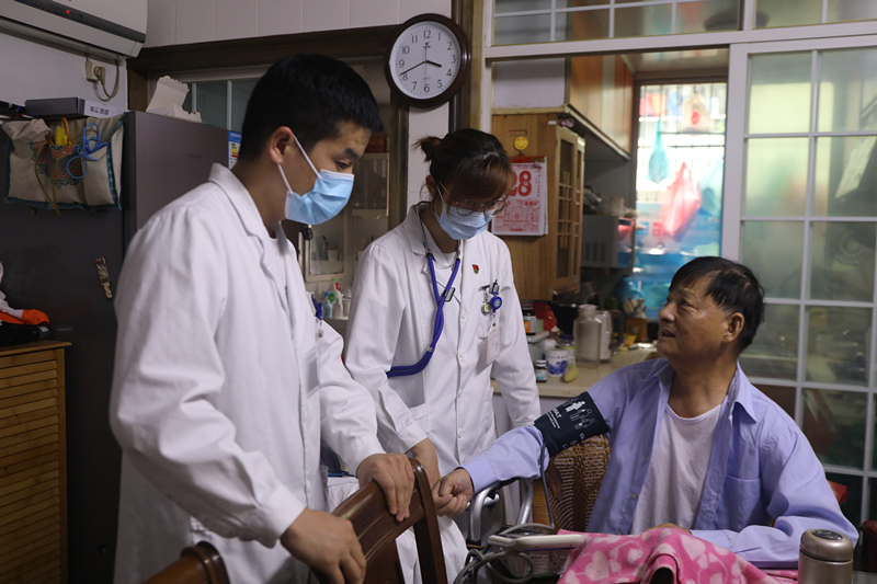 6月29日下午,在建党99周年到来之际,塔山街道水沟营社区的部分因患病行动不便的老党员家中迎来了一批特殊的“客人”:校附属医院选派的援鄂抗疫一线医生张建海、寿卫青等,随同社区干部走访慰问了社区老党员,为老党员进行了听诊、测量血压、测血糖等身体检查,同时根据病情仔细耐心讲解病理知识和医嘱,切实将党组织的关心关怀送到老党员家中。这是学校为了更好地落实中央和省委、市委关于加强城市基层党建和基层治理决策部署,加快推进我市“两个高水平”建设,更好地履行与水沟营社区党建“契约化”共建开展的多项活动之一。