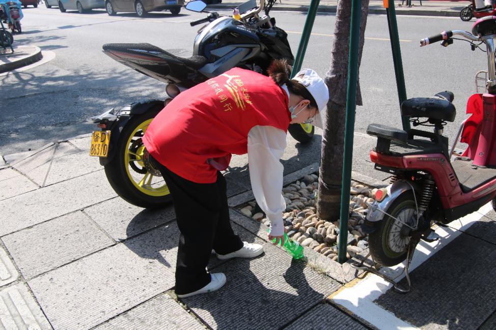 维护停车秩序,劝导或帮助市民按秩序停好非机动车