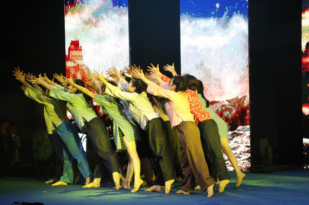 一曲《龙的腾飞》敲击颤动的青春,腾飞心中的梦想;一舞《活着1937》舞者们用坚毅诠释“家国”,勾起人们对红色历史的感悟;一篇《预言》振奋人心,引起大家对未来美好幸福生活的向往;一首《不忘初心》让观众重温了红军战士用生命和热血铸就的雄壮历史,重温了革命先辈用理想和信念丈量的伟大远征,抒发心中对伟大祖国深沉的热爱,将整场晚会推向高潮……