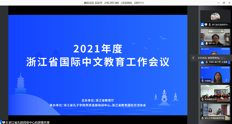1月13日上午,为推进我省国际中文教育工作,由浙江省教育厅国际合作与交流处举办的2021年度浙江省国际中文教育工作会议在线上召开,全省二十余所高校的职能部门负责人、汉语国际教育专业负责人等出席会议。我校兰亭书法艺术学院相关负责人做主题发言,外事处及国际教育学院主要负责人及相关教师出席会议。