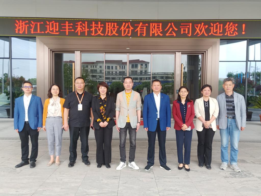 在浙江迎丰科技股份有限公司。沈赤一行先后参观了浙江迎丰科技股份有限公司数字化生产系统和企业发展成就展厅,对科技攻关、生产实践等方面进行深入了解。参观结束后,双方就此次访企拓岗专项行动举行座谈交流。