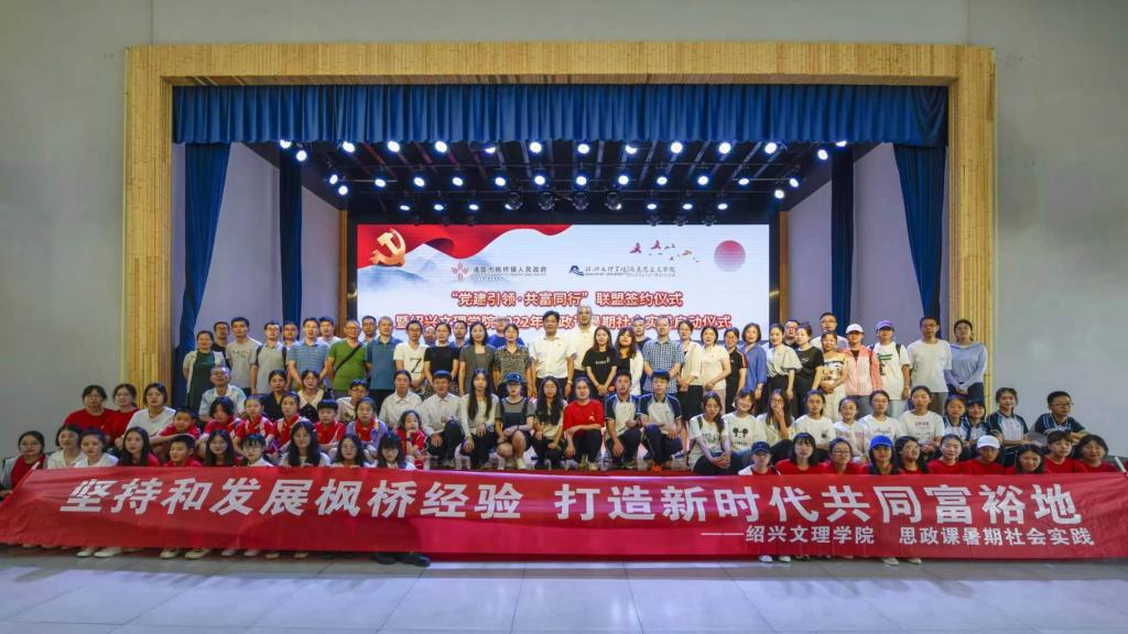 7月1日,马克思主义学院党委与枫桥镇党委“党建共建•共富同行”联盟启动仪式在枫源村文化大礼堂隆重举行。通过党建联盟签约、“大中小学思政课一体化”红色研学基地创建、暑期社会实践团授旗出征等活动,更好地把学深悟透习近平新时代中国特色社会主义思想与习近平总书记对浙江工作的重要指示精神贯通起来,把加强党的全面领导与实践新时代“枫桥经验”紧密结合起来,积极探索全方位战略合作共建,推努力形成互带互动、优势互补、资源共享、共同发展的党建工作新格局,以高质量党建推动高质量发展,合力擦亮“枫桥经验”金名片,共同续写“社会治理现代化”大文章。仪式上,少先队员们为“光荣在党50年”枫桥镇老党员献花,全体党员重温入党誓词,让在场的大中小学生们进一步感受榜样力量,让革命薪火代代相传。