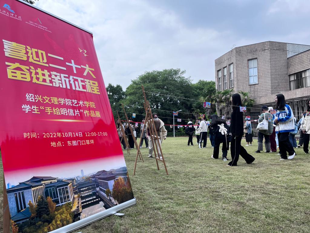 “手绘迎二十大明信片作品展”的作品由研究生、本科生和高职学生等共同完成,共收到手绘作品120余件,精选40张展出。