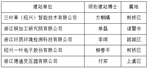 2022年机械与电气工程学院“绍兴市博士创新站”名单