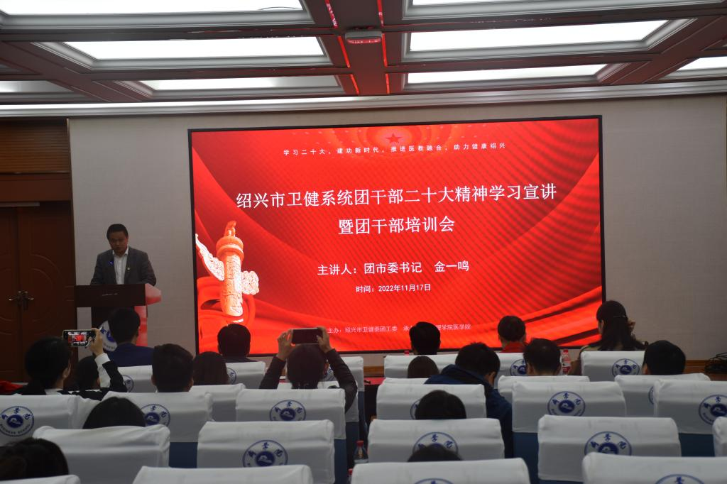 11月17日,团市委书记金一鸣来我校医学院宣讲党的二十大精神。绍兴市卫健委团工委书记张福光,医学院相关负责人,校各附属医院、医学院附属社区卫生服务中心团委书记等参加会议。会议由张福光主持,市卫健系统各级团干部在线收看直播。