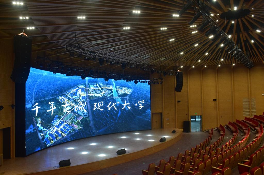 风则江大讲堂以“诗雨伞堂”为设计理念,建筑形态是对绍兴伞文化的抽象表达,采用仿木金属构件、印花玻璃、穿孔铝板等现代材料,展现“伞荫诗书、满堂经纶”的传统讲堂文化意境。11月25日,基建处、资产与实验室管理处、后勤管理处会同浙江中成控股集团对风则江大讲堂舞台灯光等专业设备进行移交,共涉及舞台机械系统、舞台灯光系统、舞台音响系统、舞台LED屏系统、舞台数字会议系统、无线同传系统等设备系统。
