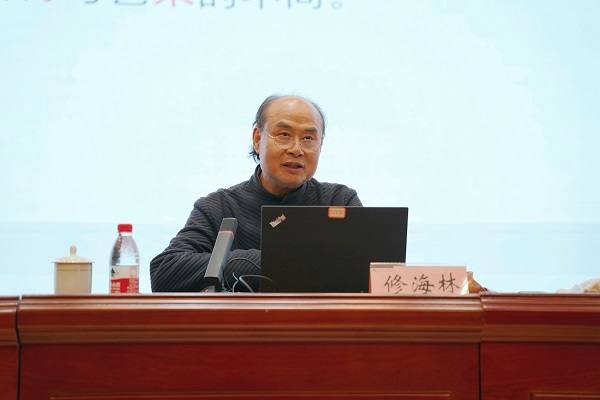 3月27日晚,风则江大讲堂第356讲“美育古今宏微论——以‘人’与‘艺’的历史选择为主线”专题讲座在风则江大讲堂报告厅举行,国务院有突出贡献政府特殊津贴获得者、北京市高等学校优秀教学团队中国音乐史教学团队带头人、北京市高校教学名师、中国音乐学院建院50周年突出贡献奖获得者、中国音乐学院博士生导师修海林教授作报告。艺术学院党政领导班子成员及全校400多名师生代表聆听讲座。讲座由艺术学院院长童师柳主持。