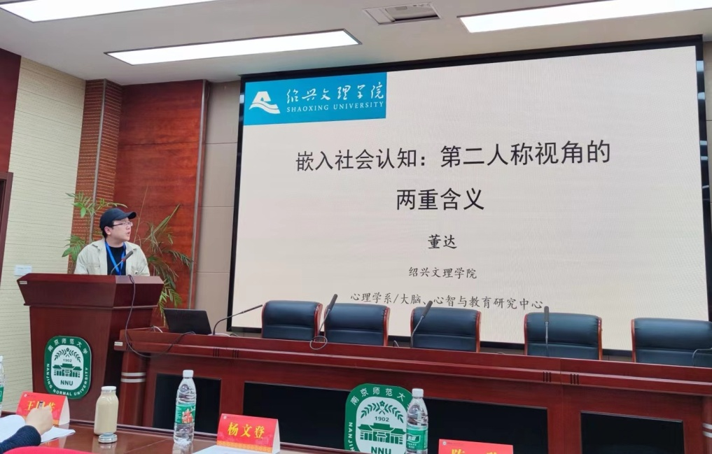 董达博士作分组报告《嵌入社会认知:第二人称视角的两重含义》,认为第二人称关系即为纯粹的“我-你关系”,“我”的感知对象只是纯粹的“你”,“你”的感知对象也只是纯粹的“我”。在第二重含义中,第二人称视角被嵌入三元组中,原来的二元组中的在双方直接收第二人称视角的引导同时注意第三方对象。