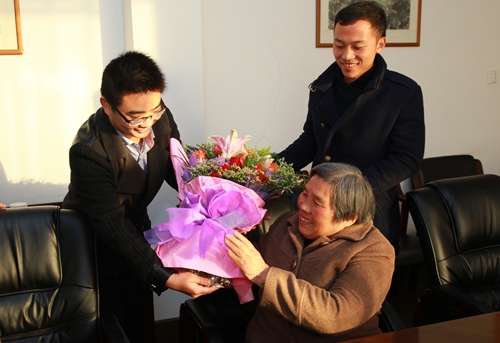 仪式结束后,楼梅志女士、王荣彪先生及其家属与获奖同学座谈,两位同学汇报了自己的相关情况。