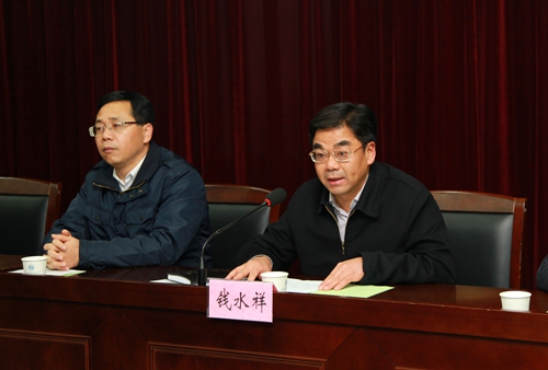 钱水祥副书记发表讲话。他代表学校表达了两个感谢。一是感谢一位充满爱心的母亲——楼梅志女士,是她将儿子10万元的抚恤金捐给了学校,将对儿子的思念升华成了一种社会责任,这是一位母亲的大爱,一种让人尊重的大爱;一位是情系母校的校友——王荣彪主任,他是我校医学院前身绍兴卫校84届临床医学毕业生,始终关心母校、服务母校,今年根据母亲意愿,将10万钱捐给母校,在学校设立基金和奖学金。最后,他要求基金会管好基金、用好基金;要求医学院总结经验、创新方式,评好奖学金,让基金和奖学金在培养优秀医学人才中发挥引领作用;要求同学们以社会主义核心价值观为指引,自强不息,志存高远,心存感激,学会感恩,摆正位置,勇于担当,做一个理想远大、信念坚定、诚信友爱、奉献爱心、有责任心和进取心的青年大学生。