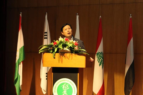 来自浙江理工大学的周勇教授用一口流利的英语向我校和浙江越秀外国语学院的国际生们介绍了新时期中国发展的现状,同时进一步解析了中国现阶段的发展模式和中国特色社会主义道路。周教授从我国的改革开放、经济、法律、生态环境、外交、党政建设等方面入手,进行了深入分析,向在场师生展示了在“一带一路”背景下中国的新形象、新风貌和新姿态。