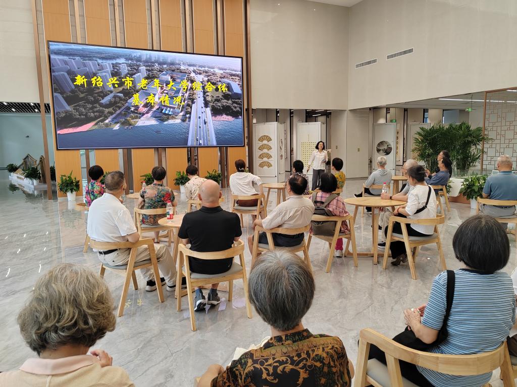 本次活动参观了位于镜湖新区的绍兴市老年大学。绍兴市老干部局赵越红副局长介绍老年大学的办学情况和新老年大学功能布局和设计等。各位党员驻足在各个大厅、教室,进行体验。