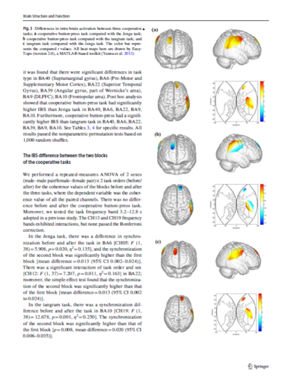 近日,我校大脑、心智与教育研究中心陈巍教授团队在著名神经解剖学领域期刊Brain Structure and Function(SCIJCR Q1, IF=3.1)发表题为“Inter-brain neural mechanism and influencing factors underlying different cooperative behaviors: a hyperscanning study”的学术成果(文章链接https://doi.org/10.1007/s00429-023-02700-4)。该研究是我校首个文科实验室“大脑、心智与教育研究中心”大脑功能性近红外设备(functional near-infraredspectroscopy, fNIRS)投入使用后的一项成果。