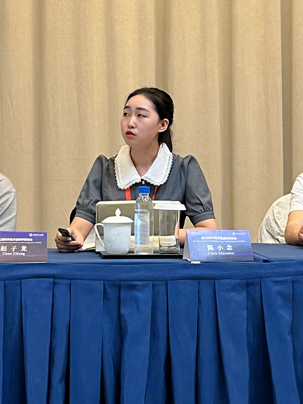 在我校马克思主义学院杨又老师的指导下,陈小念在分会场作了题为《中国哲学视域下的“道”、“器”(“物”)、“技”诠释》(Interpretation of “Dao”, “Qi” (“Thing”) and “Technique” from the Perspective of Chinese Philosophy)的主题报告。报告从中国哲学视域出发,分析了“道”、“器”(“物”)、“技”的具体含义和相互关系,即“道”是“器(物)”“技”之根本,“器(物)”是“道”“技”之存在,“技”是联通“道”“器(物)”之媒介;报告以“吕梁丈人蹈水”“梓庆削木”“运斤成风”三个著名故事为例,对“以道驭术,以术(器)辅道”“以器载道,道在器中”“道以明向,器以成事”进行了深入诠释。在报告中,陈小念分析指出,中国哲学为人类文明作出了突出贡献,其对“道”“器”(“物”)“技”的内涵及其关系的理解为当代人类文明发展提供了新的视野,也为我们理解当代科学实践、技术活动、人文精神三者的关系提供了方向上的指引——人类文明的发展并不是单独依靠其中某一方面推动,而是由科学实践、技术活动、人文精神相辅相成,共同推动。在这“天下惟器”的时代,人类文明的最终归宿是科学实践、技术活动、人文精神综合性、协调性的发展。要加强中西方哲学与文化的交流互鉴,创造人类文明新形态。