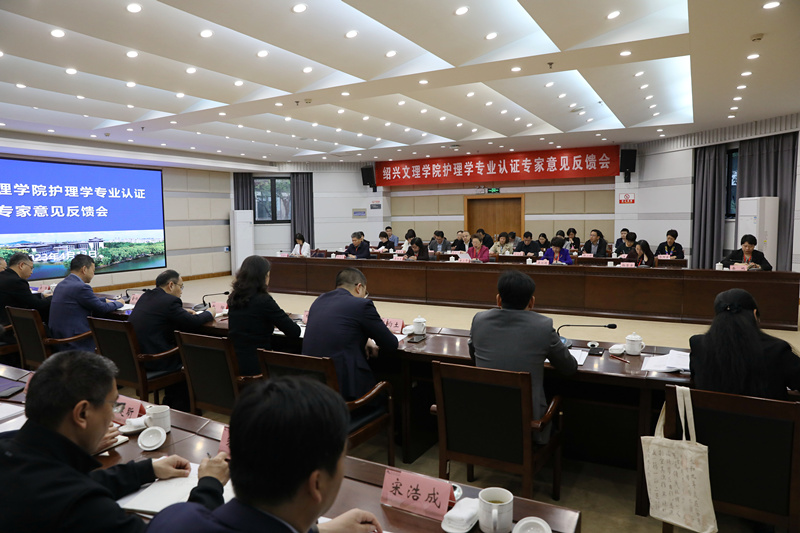 4月13日上午,护理学专业认证专家意见反馈会在图书馆一楼报告厅召开。以教育部护理学专业认证工作委员会副主任委员、福建医科大学姜小鹰教授为组长,教育部护理学专业认证工作委员会副主任委员、北京协和医学院吴欣娟教授为副组长的专家组全体成员,绍兴市卫健委党委委员、副主任金红柱,校长赵阳,校党政领导班子成员柳国庆、黄坚、柯羽、陈均土、郭航远等出席反馈会。会议由姜小鹰主持。