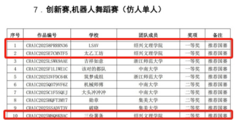 近日,第二十七届中国机器人及人工智能大赛九省联赛圆满落下帷幕,智能工程学院学子表现优异,共获得一等奖4项、二等奖2项,其中,在仿人机器人单人舞、多人舞两个赛项中获得了第一名的好成绩。所有参赛队均获得了全国总决赛的参赛资格。